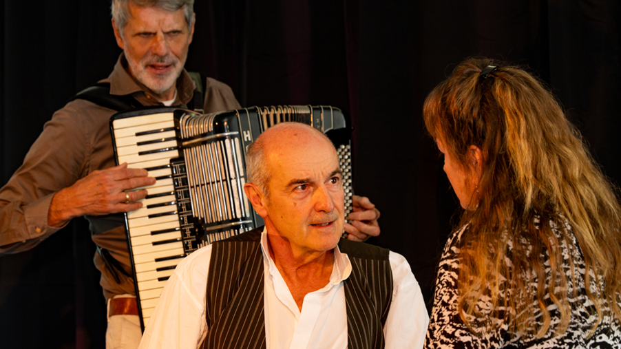Wat deze voorstelling uniek maakt, is dat Annet, de vrouw van Jos, meespeelt en haar eigen verhaal vertelt. Met fragmenten uit haar dagboeken, geschreven in de jaren waarin zij samen met Jos het gevecht aanging tegen de vergeetziekte. Daarmee wordt deze voorstelling ook een krachtig persoonlijk document: rauw en eerlijk, maar ook teder, muzikaal en met humor.