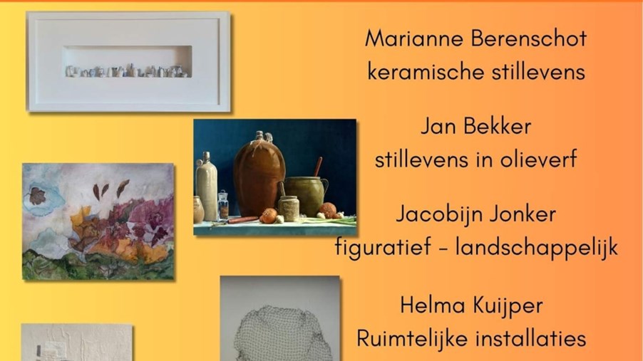 De exposerende kunstenaars zijn: Marianne Berenschot (keramische stillevens), Jan Bekker