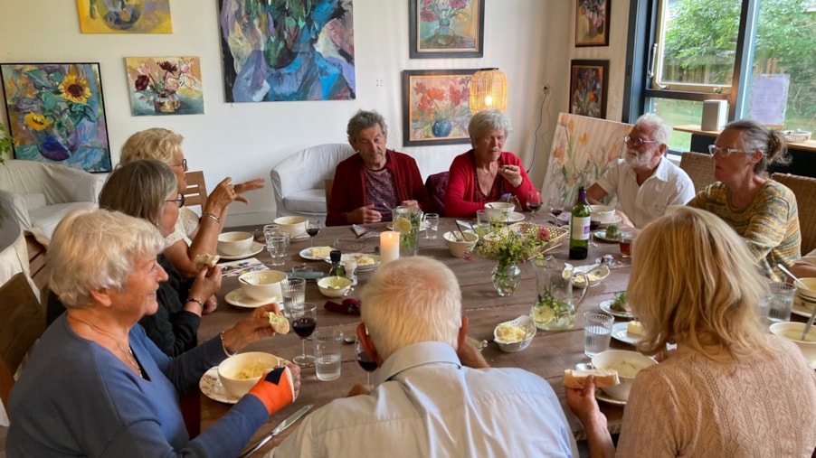 Iedere 1e woensdag van de maand. Een uitgebreide gezellige soepmaaltijd waar je je per keer voor kunt inschrijven. Zo ontmoet je iedere keer weer andere mensen. Je kunt je alleen inschrijven maar ook met een vriend of vriendin of groepje of partner komen.