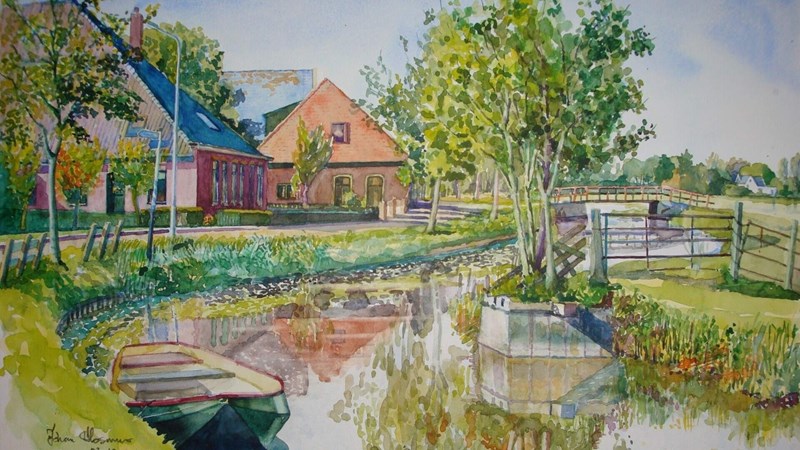 Hobbyschilder Johan Hosmus uit Barsingerhorn maakt al sinds 1980 buiten op locatie dorpsgezichten in aquarel van zowel zijn…